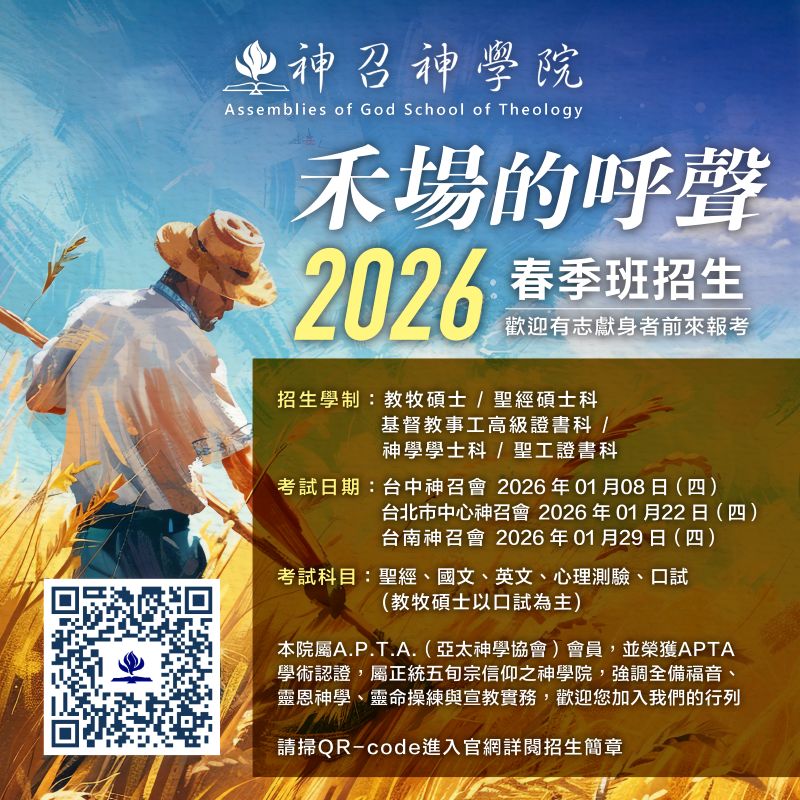 最新消息 2026神召神學院春季班招生 發佈日期:2025/12/12 發佈者: